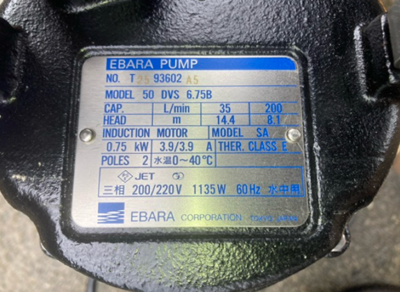 既設ポンプ:荏原50DVS6.75A ×2台