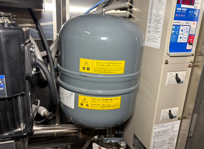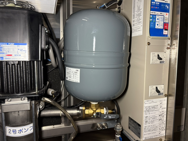 修繕内容: 2号ポンプ漏水修理、圧力タンク交換、フランジ交換
